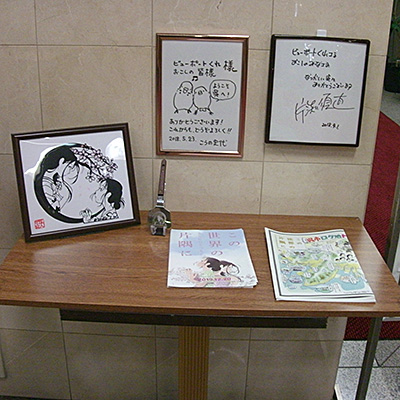 昼間、通りで見た店頭販売の惣菜買ってホテルでと思ったがすでになし。駅まで歩くとローソンの駐車場にデカい『この世界の(さらにいくつもの)片隅に』看板が設置されている。さすが呉。せっかくなので片隅&のんちゃんクラスター御用達の「森田食堂」で中めし、みそ汁、サバ煮、玉子焼で夕食。店内の一角を占める「この世界&のんちゃん」コーナー。ちょうど広島戦が流れて盛り上がっていた。おかずの追加でタコ刺し選ぶと酢醤油を勧められる。地元に習って食ってみるとなるほどの味わい。お腹満腹のボリュームで1100円は安い。さすが名物食堂。ホテルに向かってる途中で気づき、店に戻ってマスク取りに行ったらテーブルの上に出されて店主とお客さん共々笑顔で迎えられる。アットホームさに呉の印象が右肩上がり。