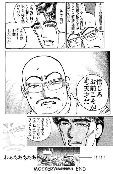 いつかは作るだろーなと思っていたアフレコ漫画なのだが、この場所で発現するとは予想がつかなかった……これも有明が取り持つ化学反応なのかのう。(2005.6.12記)