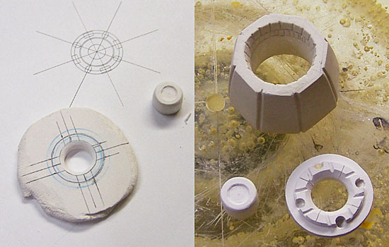 推進ノズル内のディテールアップパーツ作り。原作には描写のない部分を、星野氏より格段に劣るデザインセンスの人間がそれを補完してどうすんのという声も聞こえそう。ノズルと船体をくっつけた時の間抜けっぷりに目をつぶれず、あえて作って見た次第。